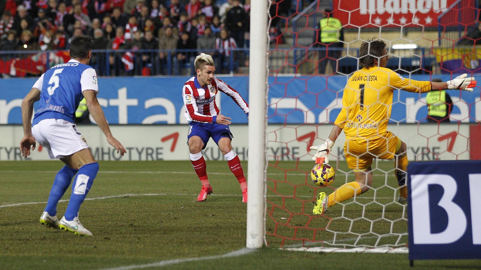 El gol sentó como un jarro de agua aún más fría a los almerienses que intentaron sacar el balón jugado desde su área fallando ante la presión intensa de la dupla Mandzukic/Griezmann. El croata cortó un balón en tres cuartos de campo y con el mismo y único toque jugó en profundidad para la carrera de Antoine Griezmann que definió ante Esteban como solo los superclase saben hacer. 2-0 Griezmann señalaba a Manzukic en agradecimiento. Volvía a colocarse el francés como máximo artillero del equipo en la competición doméstica.